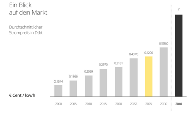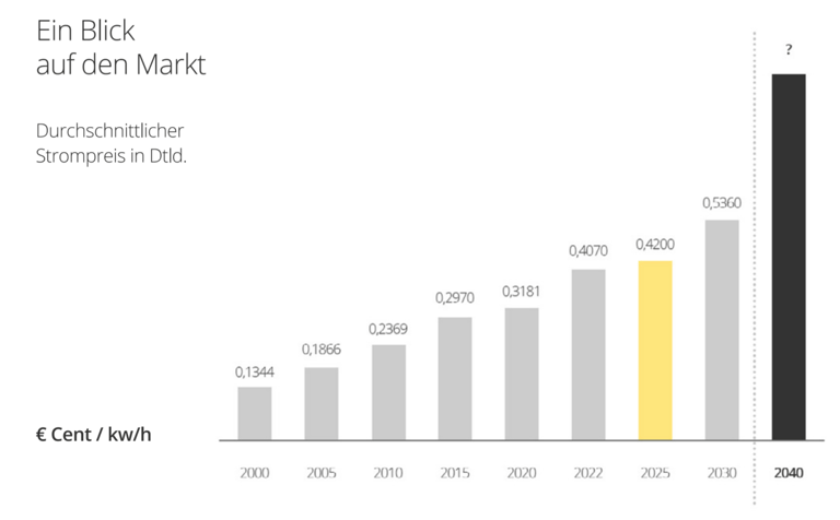 Stellen Sie sich vor, Sie werfen einen Blick auf Ihre Stromrechnung. Jahr für Jahr scheint sie ein wenig höher zu werden. Was vor einigen Jahren noch eine kleine Belastung war, entwickelt sich heute immer mehr zu einem spürbaren Kostenfaktor im Haushalt. Die Grafik zeigt diesen Trend deutlich: Seit den 2000er Jahren steigen die Strompreise kontinuierlich an, und Prognosen lassen vermuten, dass dieser Anstieg in den kommenden Jahren weitergeht.